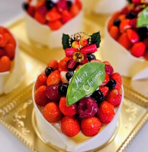 赤やルビー色の実が重なり合い、思わず心がときめくような、華やかな表情のクリスマスケーキです🎂🎄口に運ぶと、やわらかなスポンジと優しいクリームに、